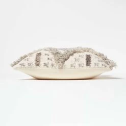 Beige and cream handwoven kilim cushion, traditional style geometric with tufted design, for sofa or bed, a textured cushion with super microfibre insert included