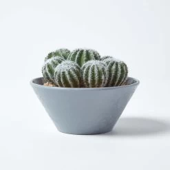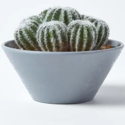 Simple yet stylish artificial Barrel Cactus arrangement set inside a decorative grey melamine pot to add a botanical look to your interiors.
