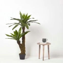 Our artificial birds nest fern is the perfect faux plant to create a tropical look in your home. With 2 faux wooden trunks for an authentic look, this artificial plant features the iconic green leaves of a bird’s nest fern. This tropical fake tree is perfect for your living room, hallway or bedroom and you can place inside your own planter for a finished look.