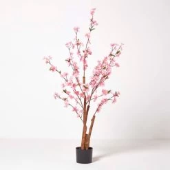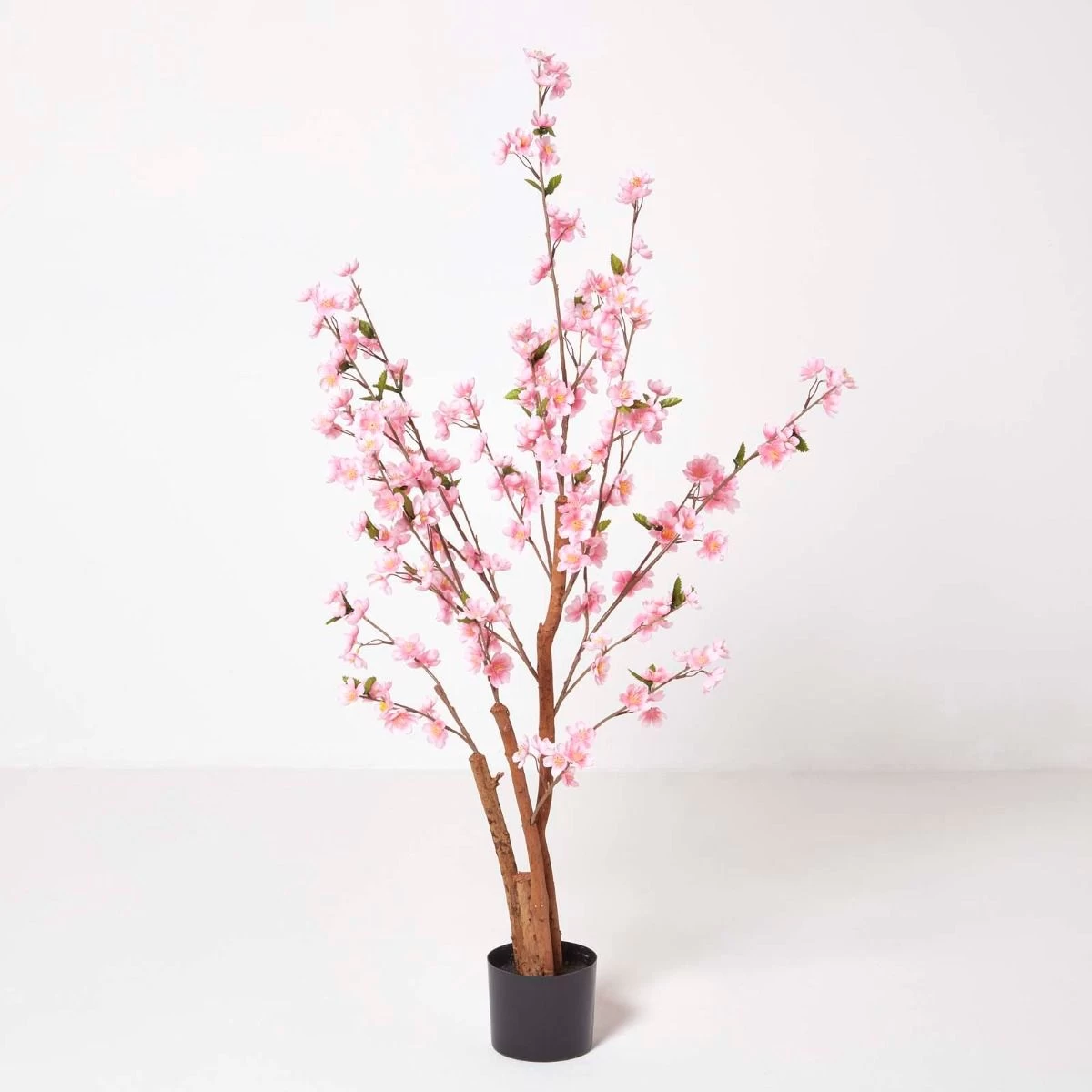 Handcrafted from a silk like polyester, these real touch petals cover wood-effect branches, with the tree potted in a black pot for lasting support β allowing you to place your tree into a decorative pot or planter of your choice. UV treated for lasting colour, it is recommended that your cherry tree is kept out of direct sunlight and dusted regularly with a dry cloth. For indoor decoration.