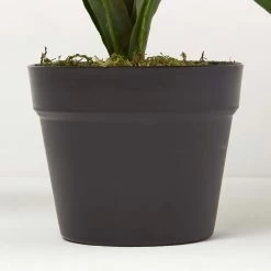 Easy to style around the home, this fake plant is UV protected for lasting colour, and it will add a natural touch to bedrooms, bathrooms and living spaces. Potted in a black pot, we recommend placing in a planter of your choice to suit your décor, Easy to care for, simply dust regularly with a dry cloth. On arrival, unbox your plant and manipulate the leaves into the style and shape of your choosing.