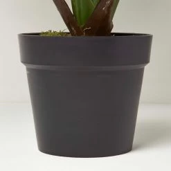 Easy to style around the home, this fake plant is UV protected for lasting colour, and it will add a natural touch to bedrooms, bathrooms and living spaces. Potted in a black pot, we recommend placing in a planter of your choice to suit your décor, Easy to care for, simply dust regularly with a dry cloth. On arrival, unbox your plant and manipulate the leaves into the style and shape of your choosing.