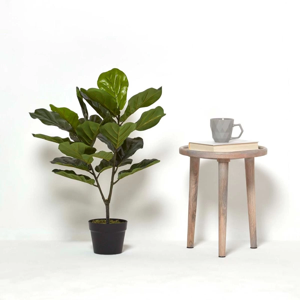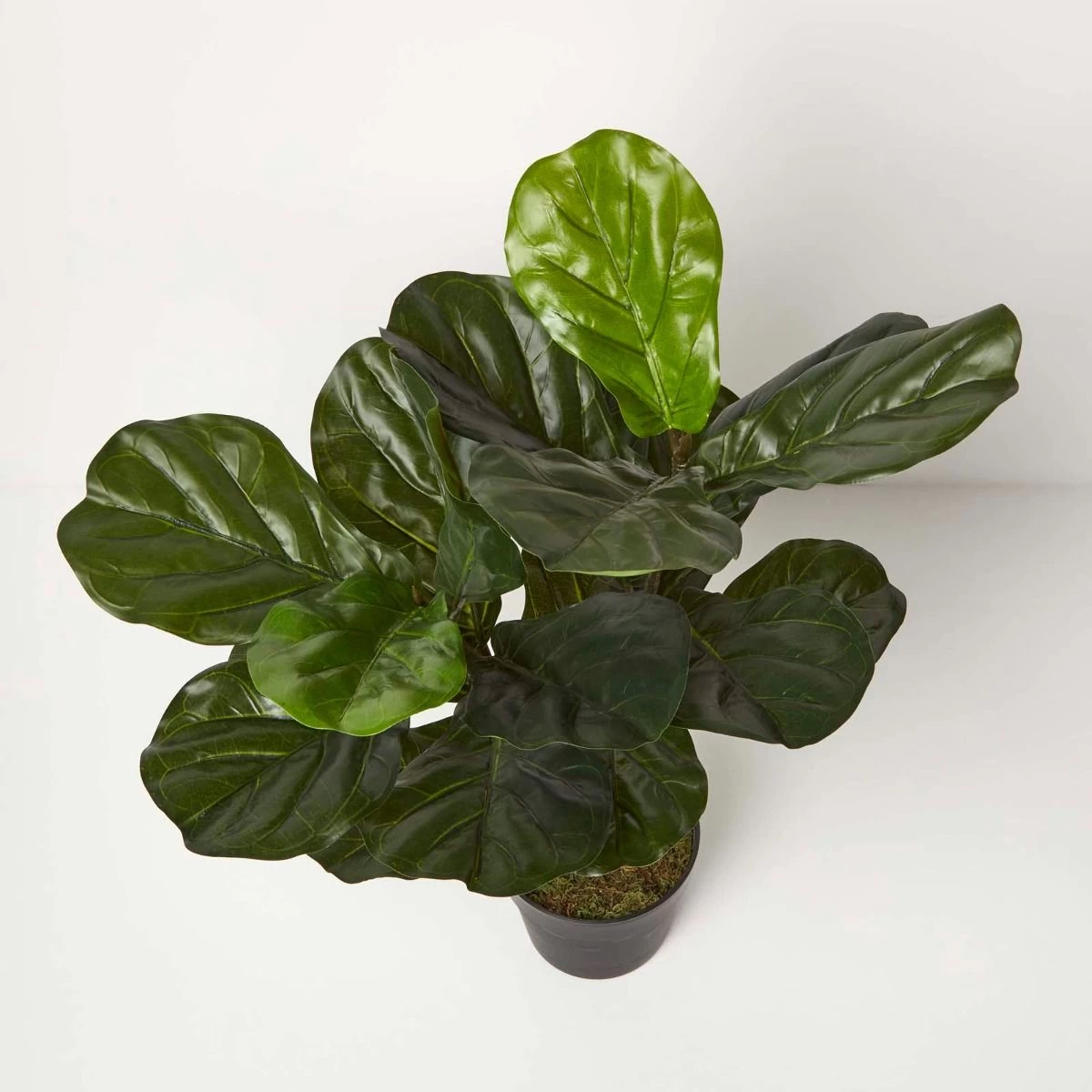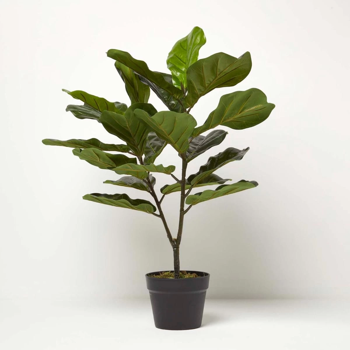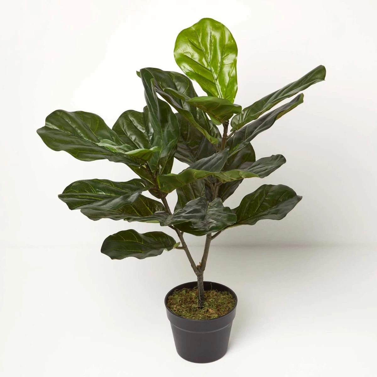 A lifelike collection of plants designed to bring the outdoors in, Homescapes artificial fiddle leaf plants area available in small and large sizes. Crafted from the highest quality materials and lifelike wooden stems these botanically accurate faux trees are potted in black pots so that they can be placed in a decorative planter of your choice.