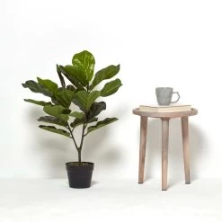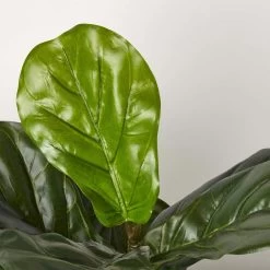 Vibrant green artificial fiddle leaf trees, these lifelike faux plants are potted and feature and abundance of lifelike waxy leaves to create that tropical look in any home.