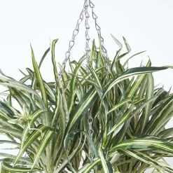 Great for adding a natural touch to your kitchen, bathroom, living room or bedroom this artificial spider plant is bursting with vibrant green leaves, perfect for freshening up dull interiors. This bright hanging basket is great for those who prefer minimal maintenance but still want to add indoor plants to their décor. Bringing the outside in has never been easier with this unique artificial plant to help reconnect you to nature and create a calming and relaxing environment.