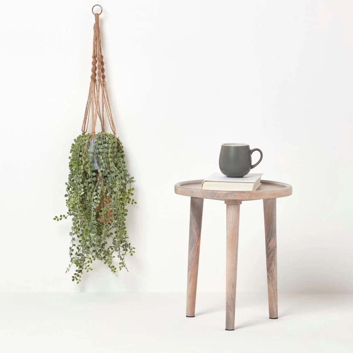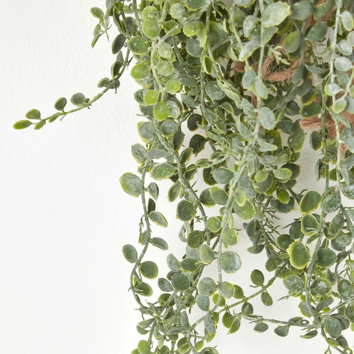 Stylish artificial hanging plant to create an urban jungle look in your home. Featuring artificial fern inside a basked with jute rope for a rustic look.