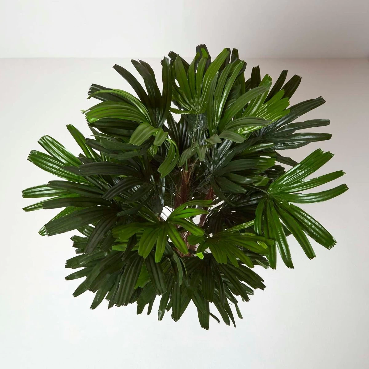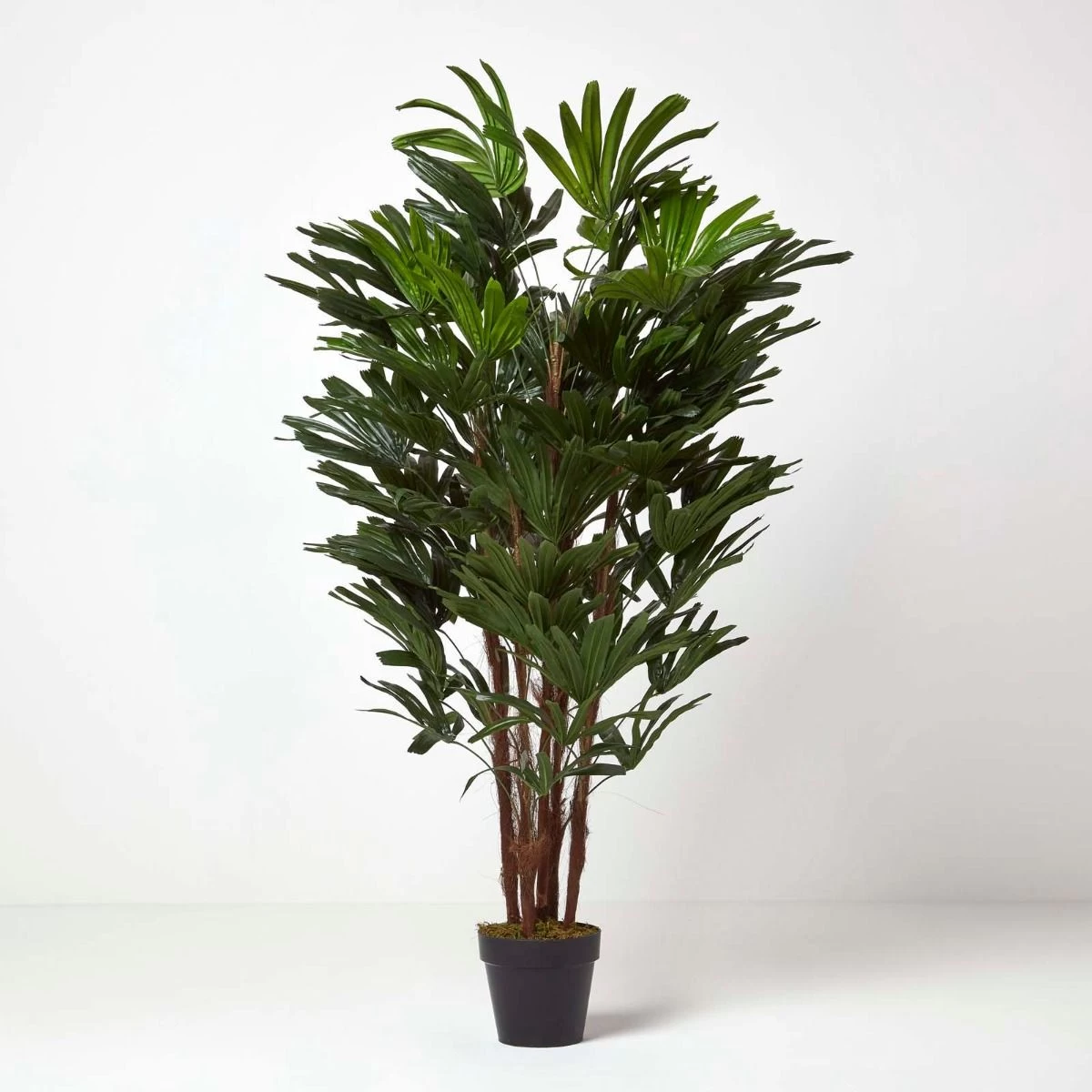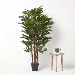 Tall artificial tree measuring 150 cm in height, this faux Rhapis Excelsa tree has been carefully handcrafted and features a faux wooden trunk for a lifelike look.