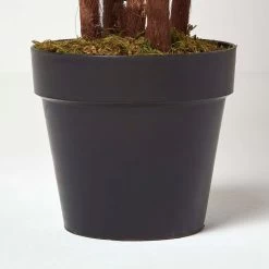 The perfect addition to creating an indoor garden look in your home, our artificial palm tree is set inside a small black pot that you can place inside your own decorative vase for a stylish look. Homescapes offer a wide range of artificial palm trees, easy to care for and will last a lifetime. Keep out of direct sunlight and wipe away dust with a soft cloth.