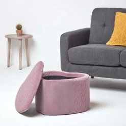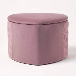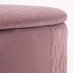 Generously padded and upholstered in our famously soft pink velvet and handstitched with a quilted plait design for added texture and comfort, this footstool with storage is supported by a sturdy wooden structure. A statement accessory that will become the centrepiece of any living space. Chic and sophisticated, this charming footstool is an eye-catching piece, perfect for use as a vanity stool at dressing tables.