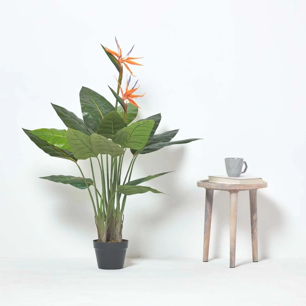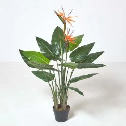 Also knows as the strelitzia plant, the bird of paradise symbolises freedom and paradise, a vibrant flower surrounded by an array of green leaves, this artificial topical plant is just like the real thing. To care for your fake bird of paradise plant, it is recommended that it is kept out of direct sunlight and you dust it regularly with a dry cloth. Homescapes’ artificial plants can be re-potted into a planter or pot of your choice.