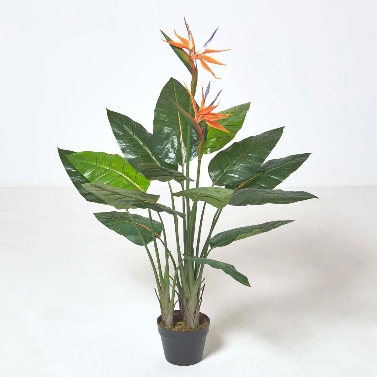 Colourful artificial bird of paradise plant in black pot, 120 cm tall tropical fake strelitzia plant for indoor decoration UV protected fake house plant.