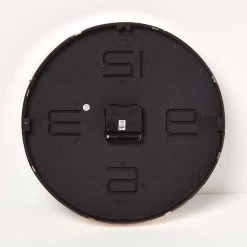 Large round mirror with a copper frame and black base. Measuring 30cm round, this large wall clock has been crafted with a modern look and been made from sturdy polypropylene and glass. All Homescapes clocks can be affixed to any wall with the help of screws and a drill. Wall fixings not included.