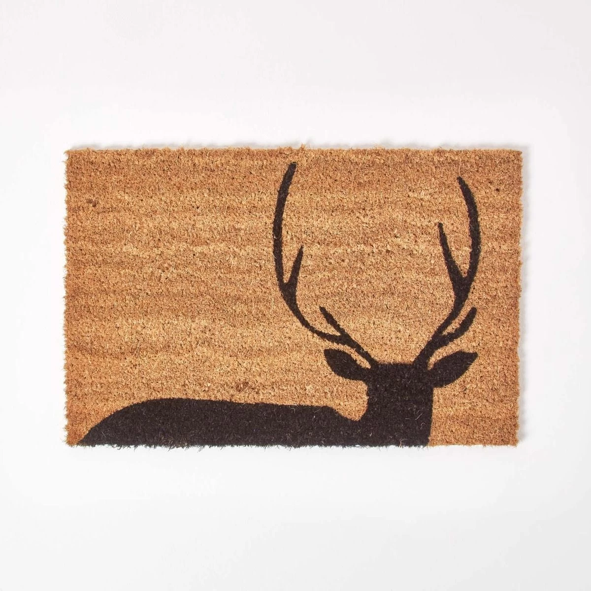 A simple yet stylish doormat from Homescapes, this coir door mat features the silhouette of a stag to add rustic style to your home. Place next to your front door or back door to keep your home clean from messy shoes. Measuring approximately 60 x 40 cm, this door mat is plenty big enough to wipe your shoes clean.