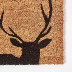 Rectangular coir doormat with black stag silhouette, a traditional style door mat with anti-slip PVC backing, perfect for animal lovers it is designed for indoor use.