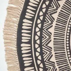 Black and white mandala rug 100% cotton round rug with tassels non-slip with printed geometric design, cotton rug for living room or bedroom decoration.