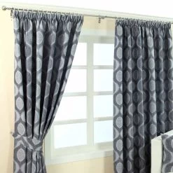 A smart, modern colour scheme meets a retro-style pattern that is fully of personality in our Retro Wave curtains, available in nine standard sizes. This jacquard design features a striking, retro-inspired, vertical wave pattern in stylish slate and pale blue tones, making these curtain pairs ideal in a bedroom, home office or living room. Lustrous Finish Woven from specially selected, high quality yarns, these stunning curtains have a luxurious, lightly textured finish with lustrous, shimmering highlights. Pencil pleats and a full lining give these curtains a stunning drape and a smart appearance. Comes with matching tie backs included.
