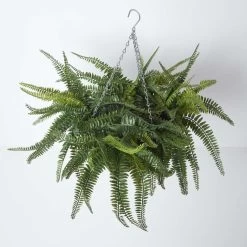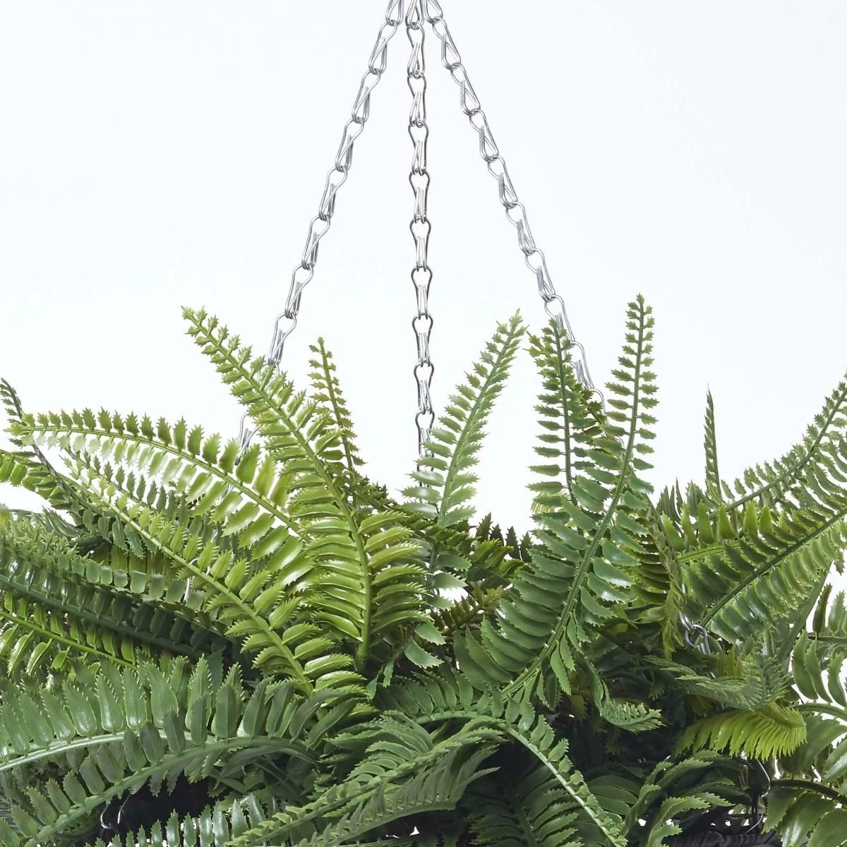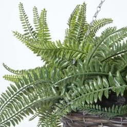 Perfect for the bathroom, living room or any other room in the house, this Boston fern artificial hanging basket is the perfect addition to any home. Full of lush green leaves this artificial hanging basket is bursting with life and adds colour to contemporary décor. Introducing nature into the home can be beneficial, by reconnecting you with nature this artificial plant can help you relax after a long busy day.