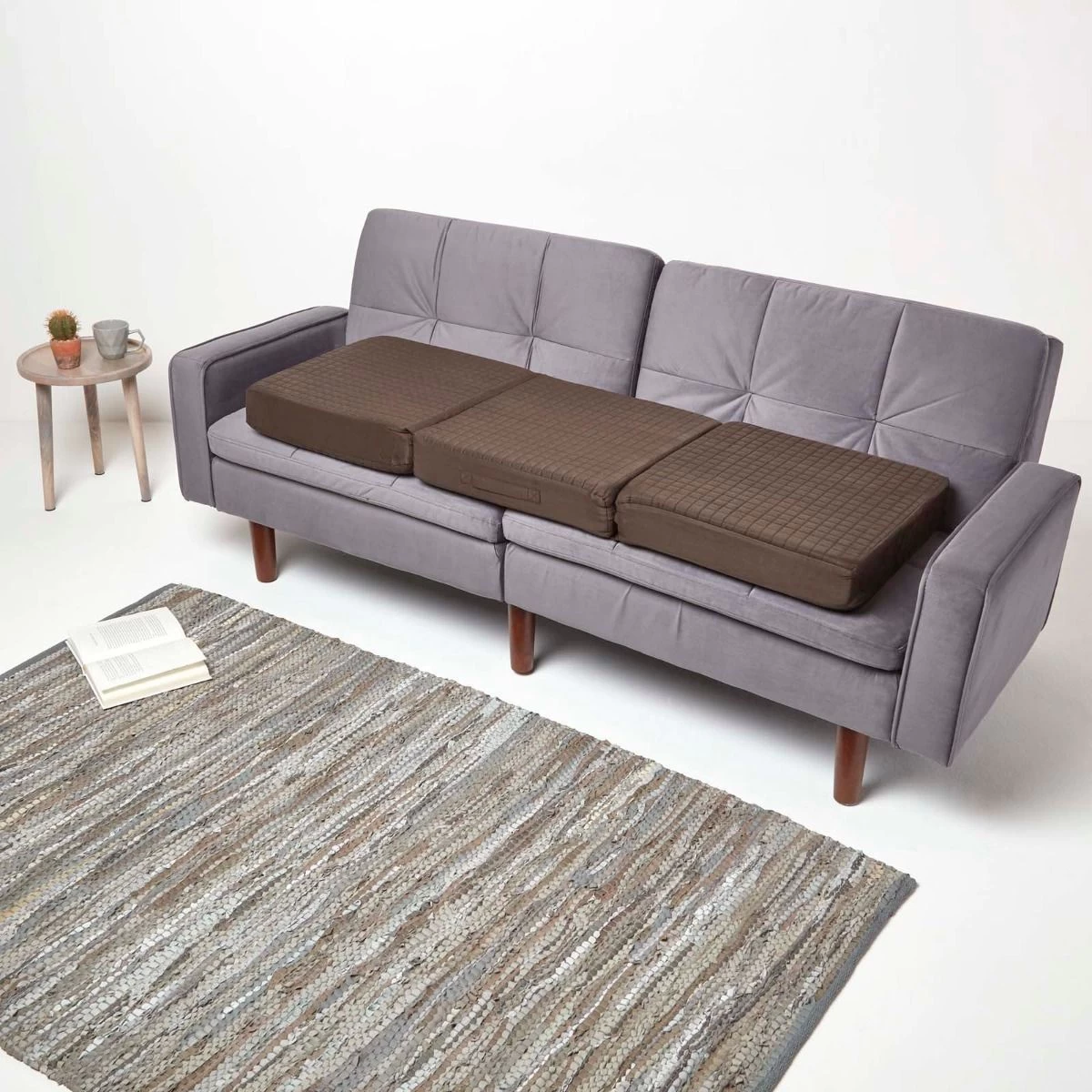 Chocolate brown extra-large 3 seater faux suede booster cushion with removable soft quilted cover, firm and supportive orthopaedic foam filled seat cushion for the elderly and pregnant women.