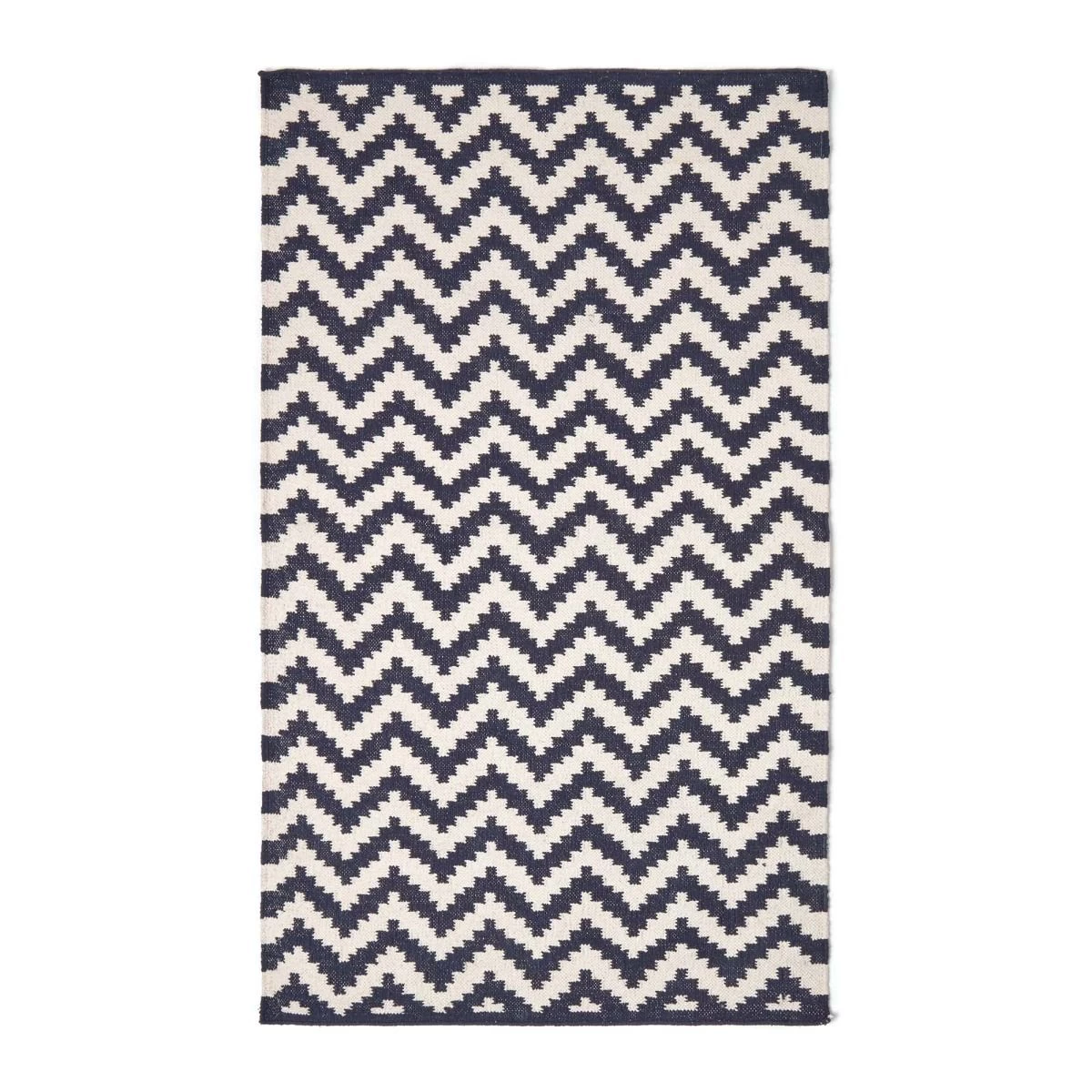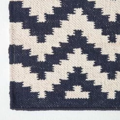 The Casablanca rug has a chic black and white geometric style chevron design, all hand woven from 100% cotton on a traditional handloom.