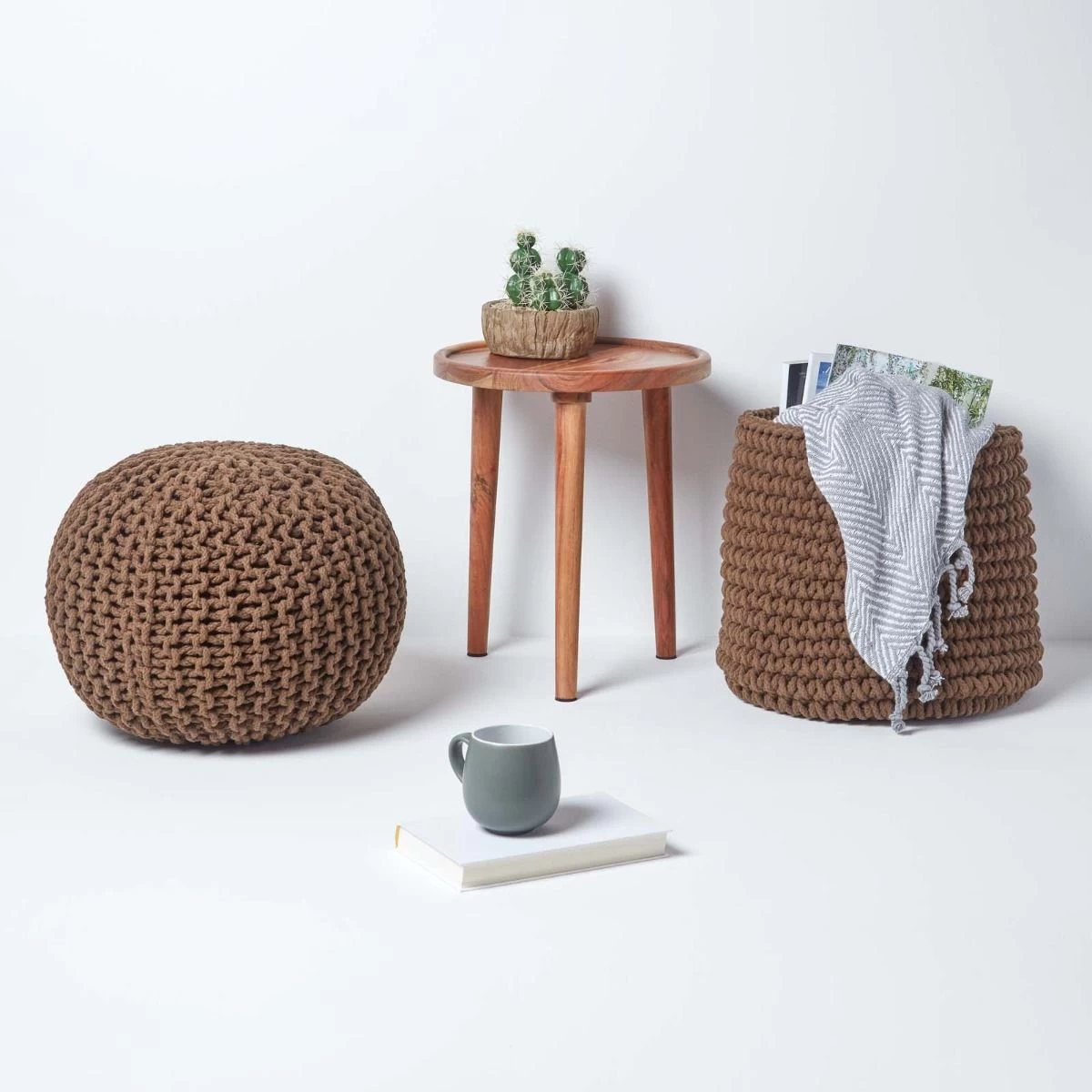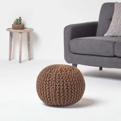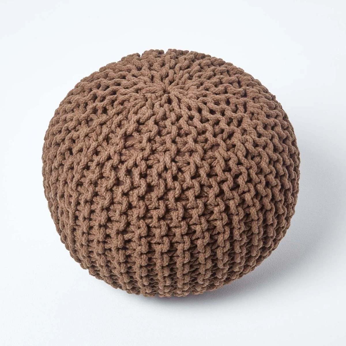 Chocolate Brown Round Cotton Knitted Pouffe Footstool