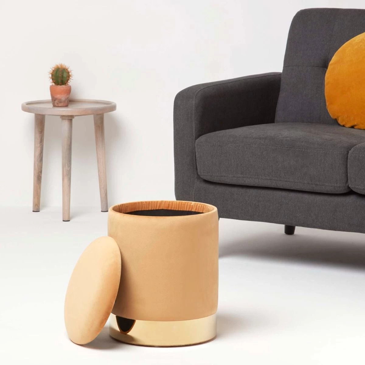Create a luxury look in your bedroom, living room or study with Clarence velvet footstool in on-trend mustard yellow. Featuring a hidden storage space, it has a filly detachable lid allowing you to store away clutter such as remote controls, throws or books.