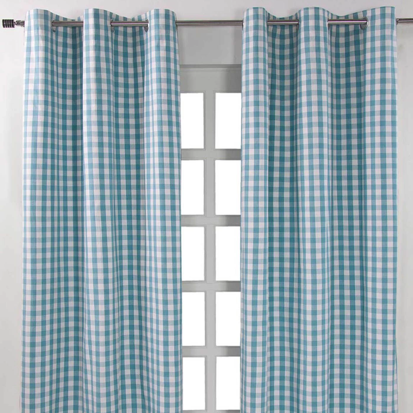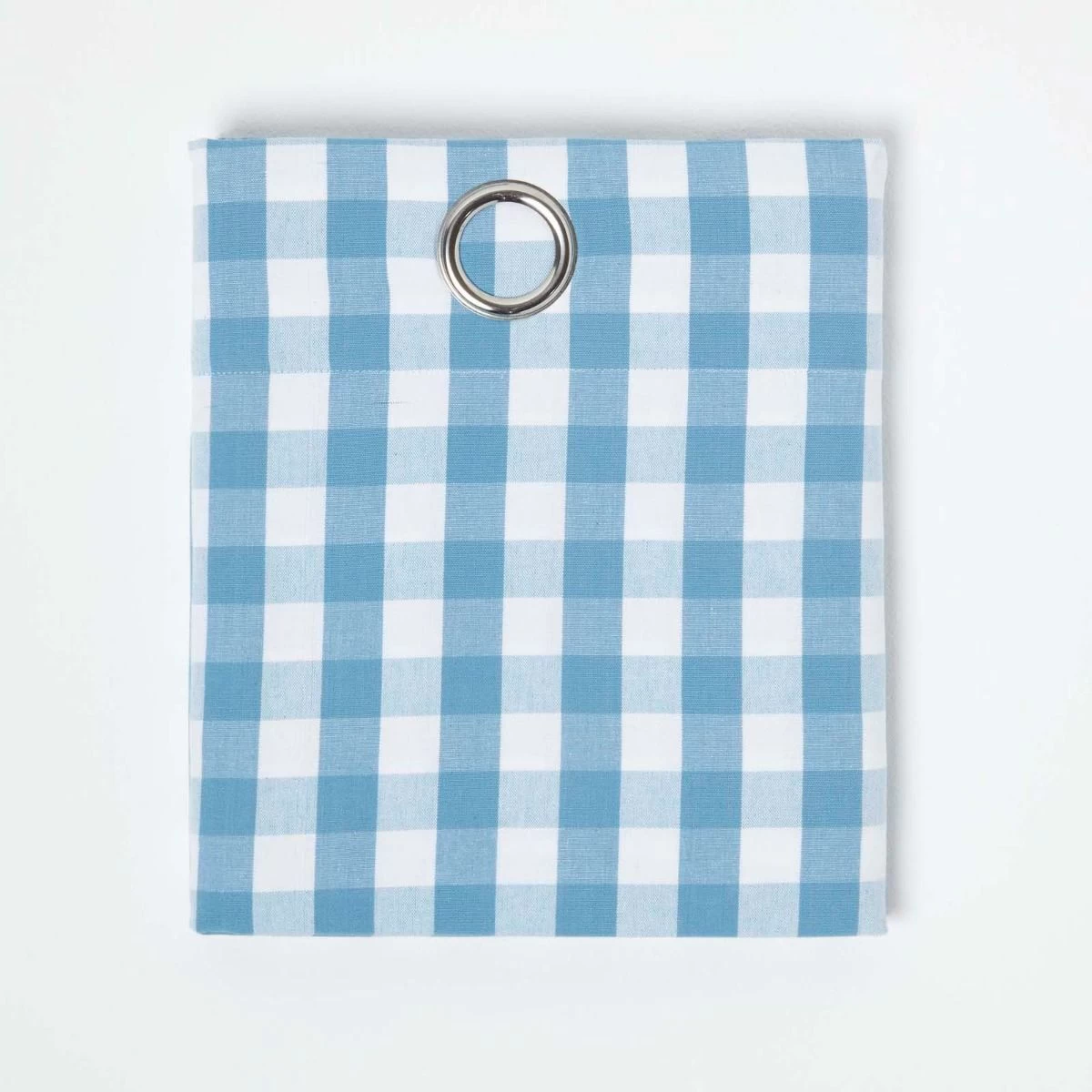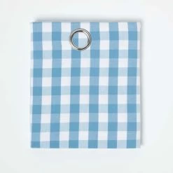 Cotton Blue Block Check Gingham Ready Made Eyelet Curtains