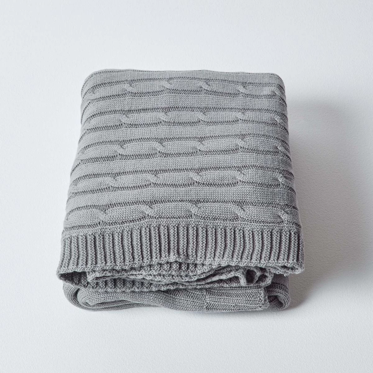 100% cotton cable knit throws from Homescapes is manufactured using finely combed cotton yarn. This means that the impurities in the fibre have been completely filtered out leaving long soft cotton fibre which makes the throw ever so nice to use. The design is classic cable which looks contemporary and stylish all the time. The throw has been assembled very carefully and is made to last, it washes very well and comes out great after every wash. A hot favourite of many international designers and brands, this throw will look gorgeous on your sofa or your bed and equally great to snuggle under.