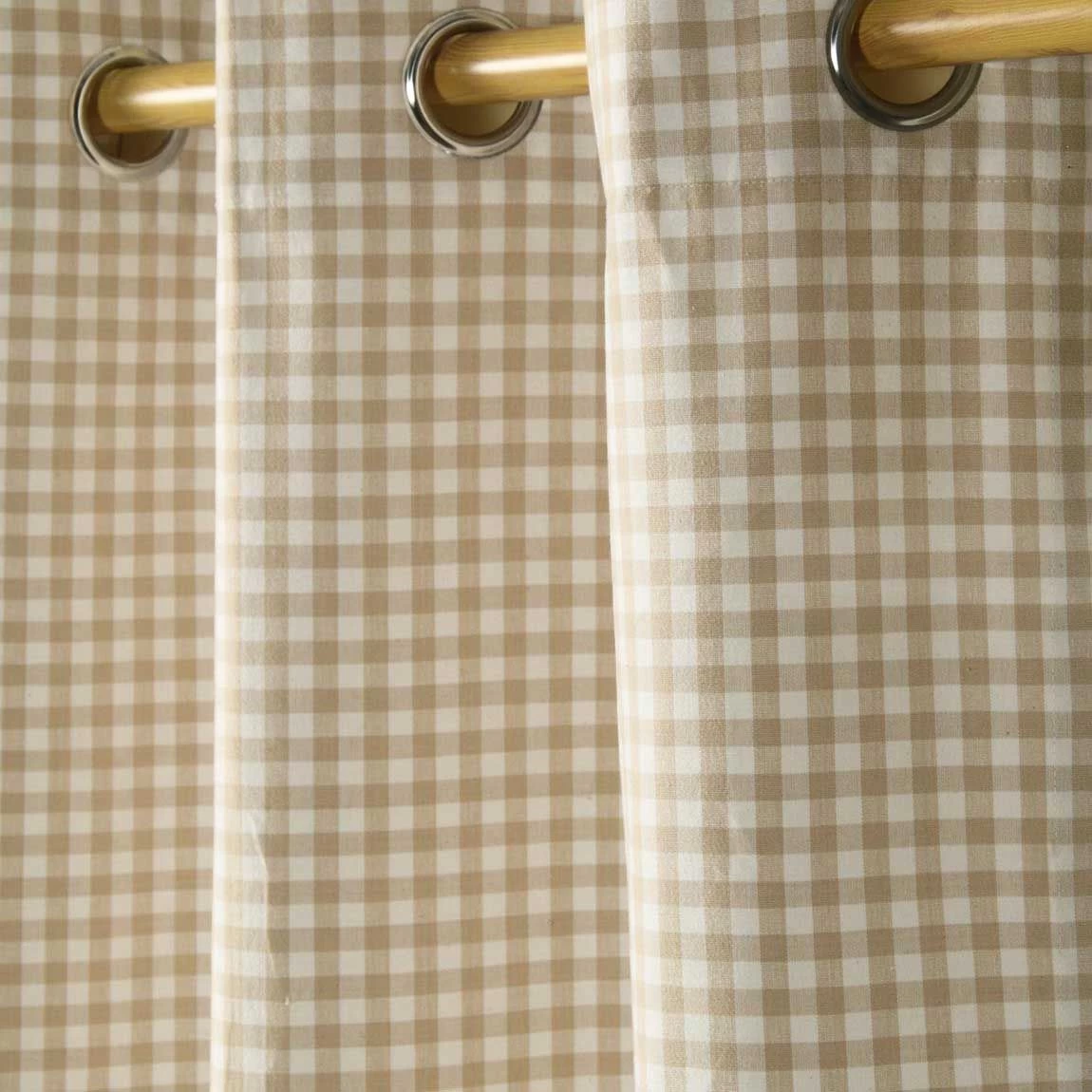 Cotton Gingham Check Beige Ready Made Eyelet Curtains