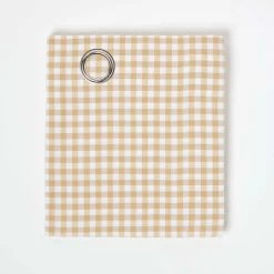 These creamy Beige Cotton Gingham Check Eyelet Curtains will fit perfectly with any decor, regardless of whether it is modern or traditional. This neutral shade of beige will add a calming touch to your room. These Beige Gingham Check Curtains were hand woven using the highest quality fabric, and consequently look beautifully rich. These eyelet curtains are available from Homescapes in four stunning colours, all of which fit wonderfully with a huge range of interior settings. Matching ranges of floor cushions, decorative cushions and fabric (to create your own soft furnishings) are available with Homescapes.
