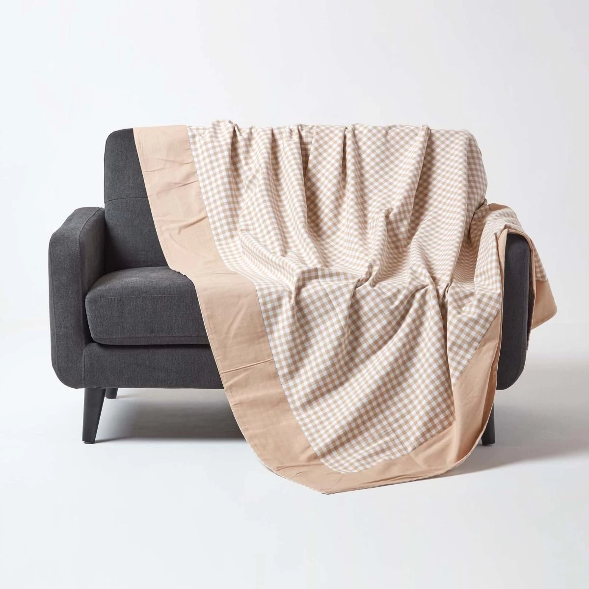 Cotton Gingham Check Beige Throw, 150 X 200 Cm