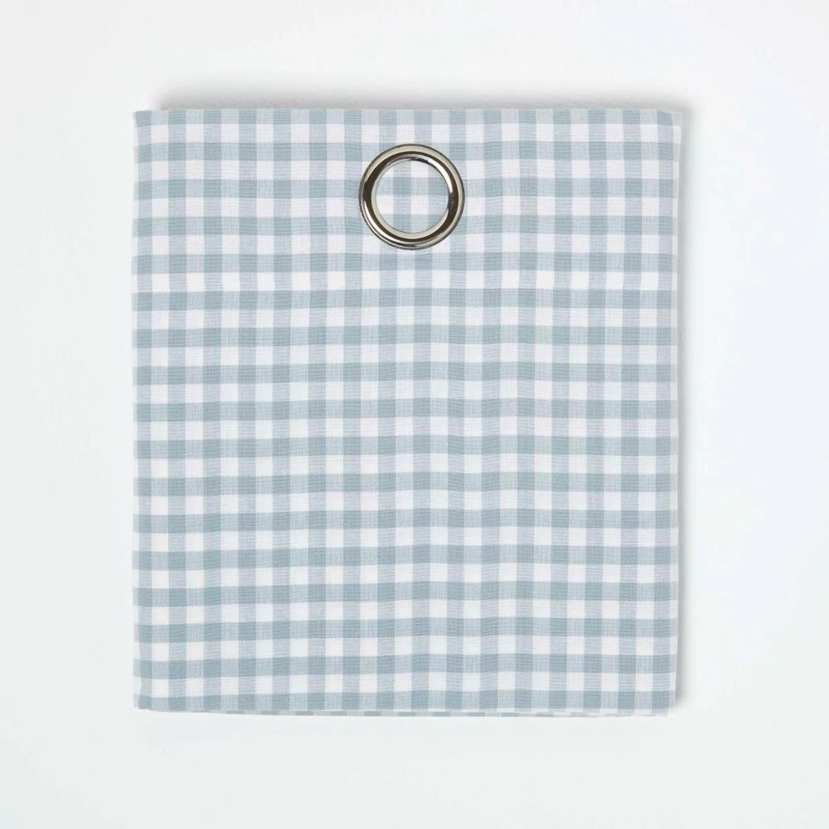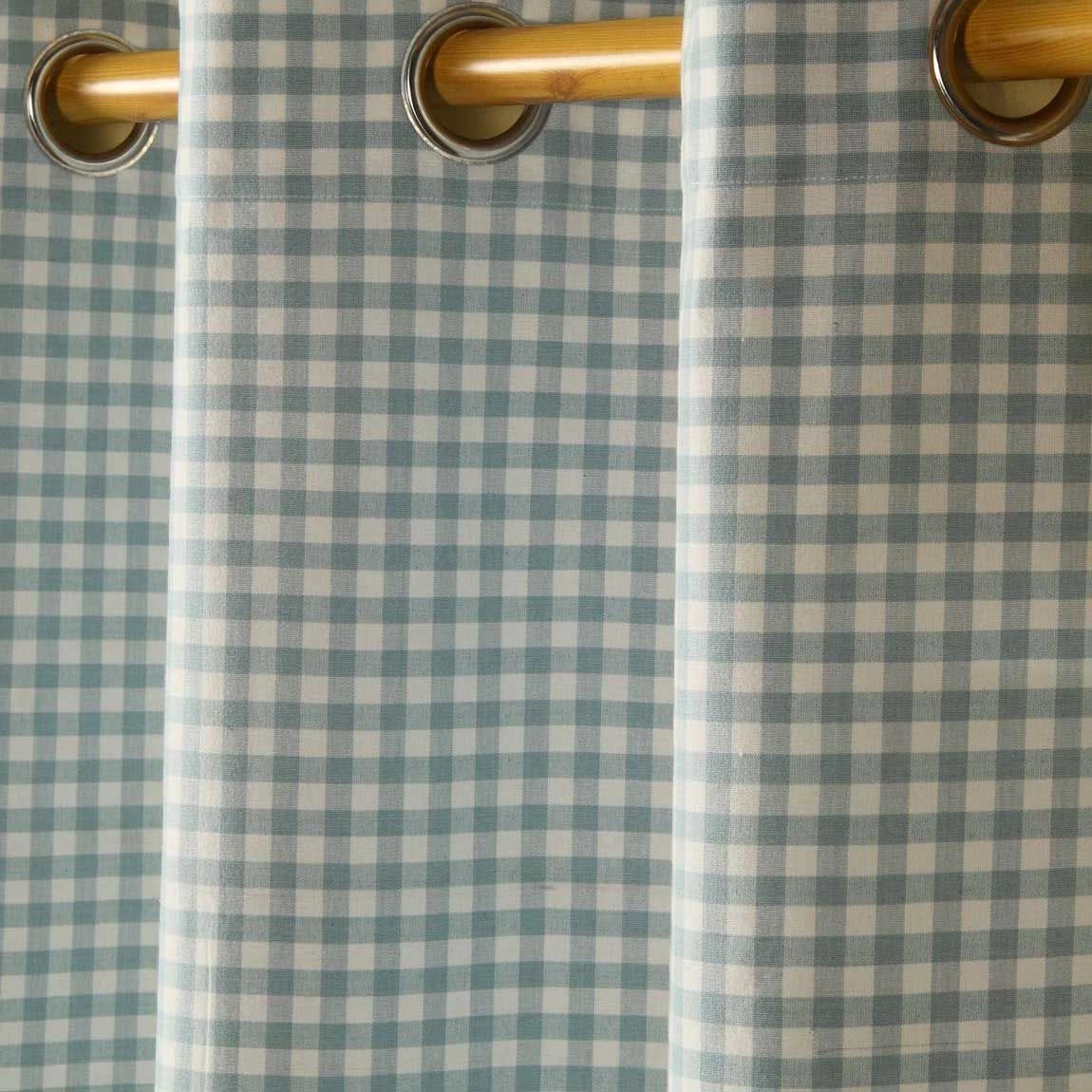 These charming Blue Cotton Gingham Check Eyelet Curtains will look beautiful in any room, regardless of whether the decor is traditional or contemporary. This light shade of blue will fit perfectly in most rooms. These Blue Gingham Check Curtains were hand woven using the highest quality fabric, and consequently look beautifully rich. These eyelet curtains are available from Homescapes in four stunning colours, all of which fit wonderfully with a huge range of interior settings. Matching ranges of floor cushions, decorative cushions and fabric (to create your own soft furnishings) are available with Homescapes.