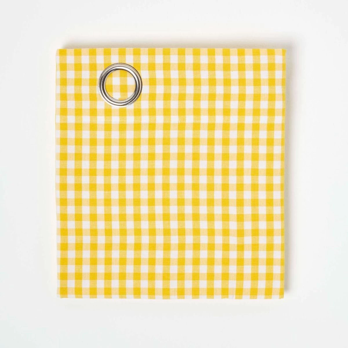 Cotton Gingham Check Yellow Ready Made Eyelet Curtains