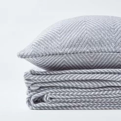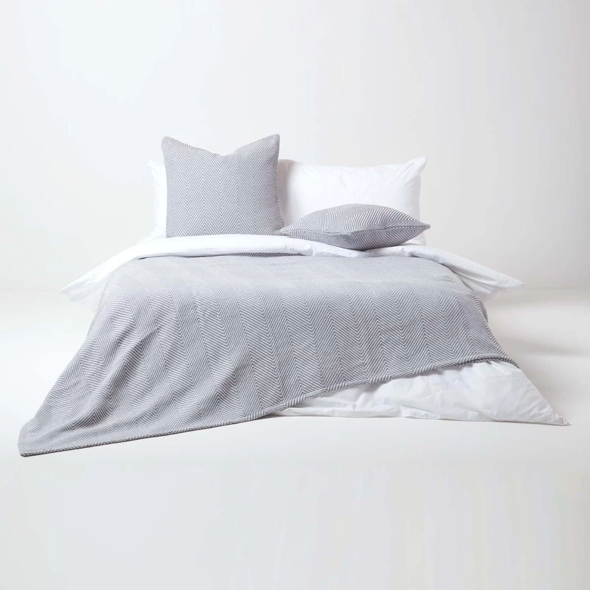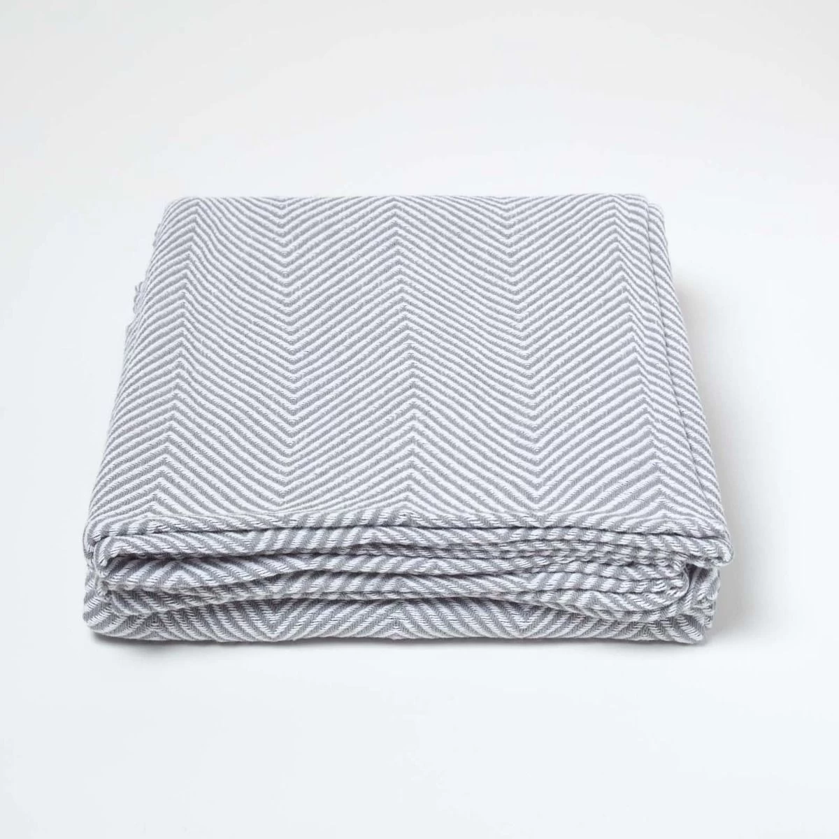 Stylish and contemporary grey throw from Homescapes. Featuring an on-trend herringbone chevron pattern, this throw is woven from 100% cotton.