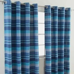 The vibrant blue of these striped curtains is perfect for the summer months and will also add a casual and cosy look to any room. These Morocco Striped Blue Curtains are the ideal way to give an informal and cosy look to any room.These curtains are made of 100% cotton and have been hand woven in India. These curtains are extremely affordable and the heavy cotton fabric the curtains are made from will make them last for a very long time. The graduating stripes design on these curtains is one of the most popular trends today, and this design is available from Homescapes in nine evergreen colours. These curtains coordinate well with the rest of the Morocco cotton striped range available from Homescapes, which includes prefilled cushions, floor cushions and throws.