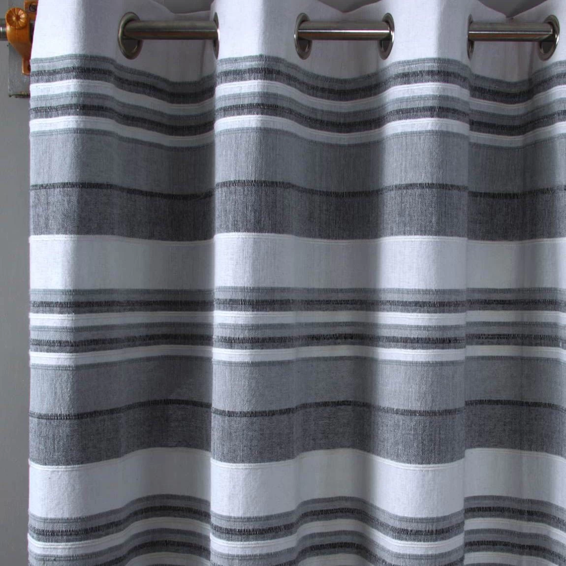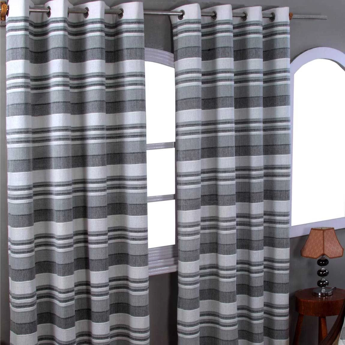 These chic monochrome striped curtains are stylish in every way possible: The combination of various shades grey and white that have been used are all very fashionable, while the graduating stripes design and eyelet style curtains are also both very on-trend. These Morocco Striped Monochrome Curtains are the ideal way to give an informal and cosy look to any room. These curtains are made of 100% cotton and have been hand woven in India. These curtains are extremely affordable and the heavy cotton fabric the curtains are made from will make them last for a very long time. The graduating stripes design on these curtains is one of the most popular trends today, and this design is available from Homescapes in nine evergreen colours. These curtains coordinate well with the rest of the Morocco cotton striped range available from Homescapes, which includes prefilled cushions, floor cushions and throws.