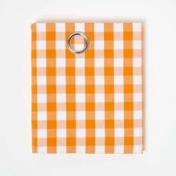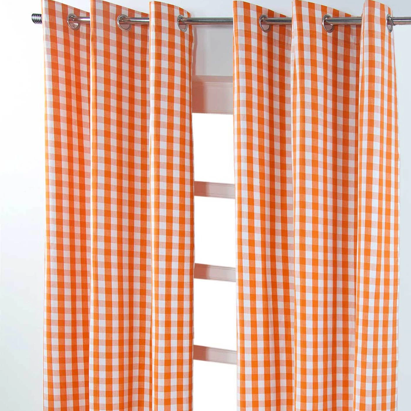 Cotton Orange Block Check Gingham Ready Made Eyelet Curtains