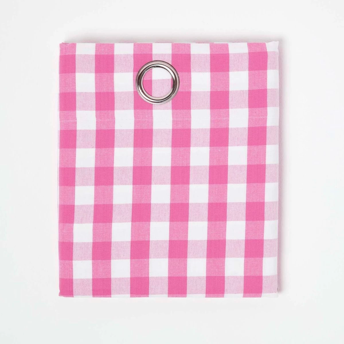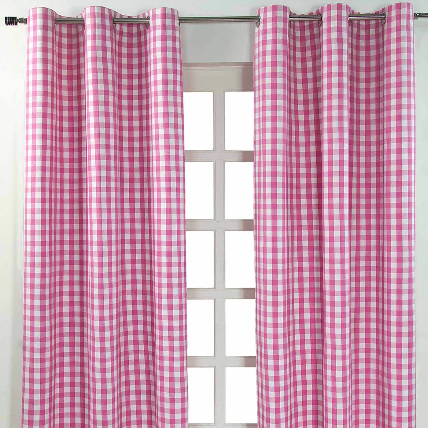 Cotton Pink Block Check Gingham Ready Made Eyelet Curtains
