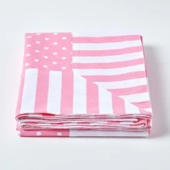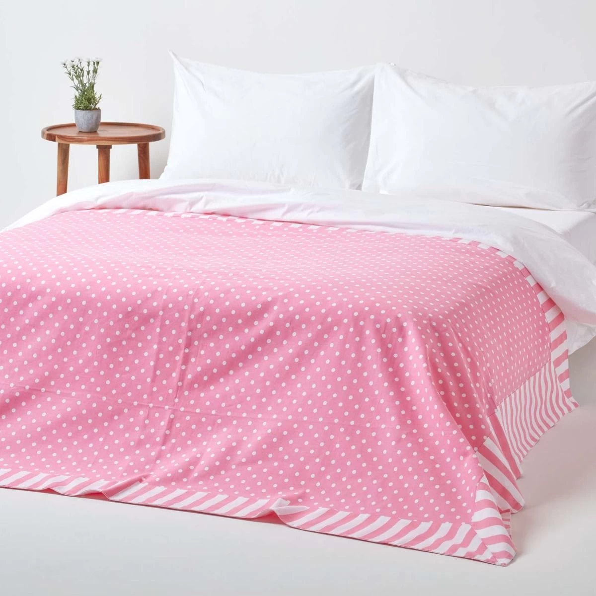 Stylish and chic sofa throw from Homescapes, woven from 100% cotton, this pink cover features white polka dots and stripes. Available in size 150 x 200 cm.