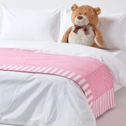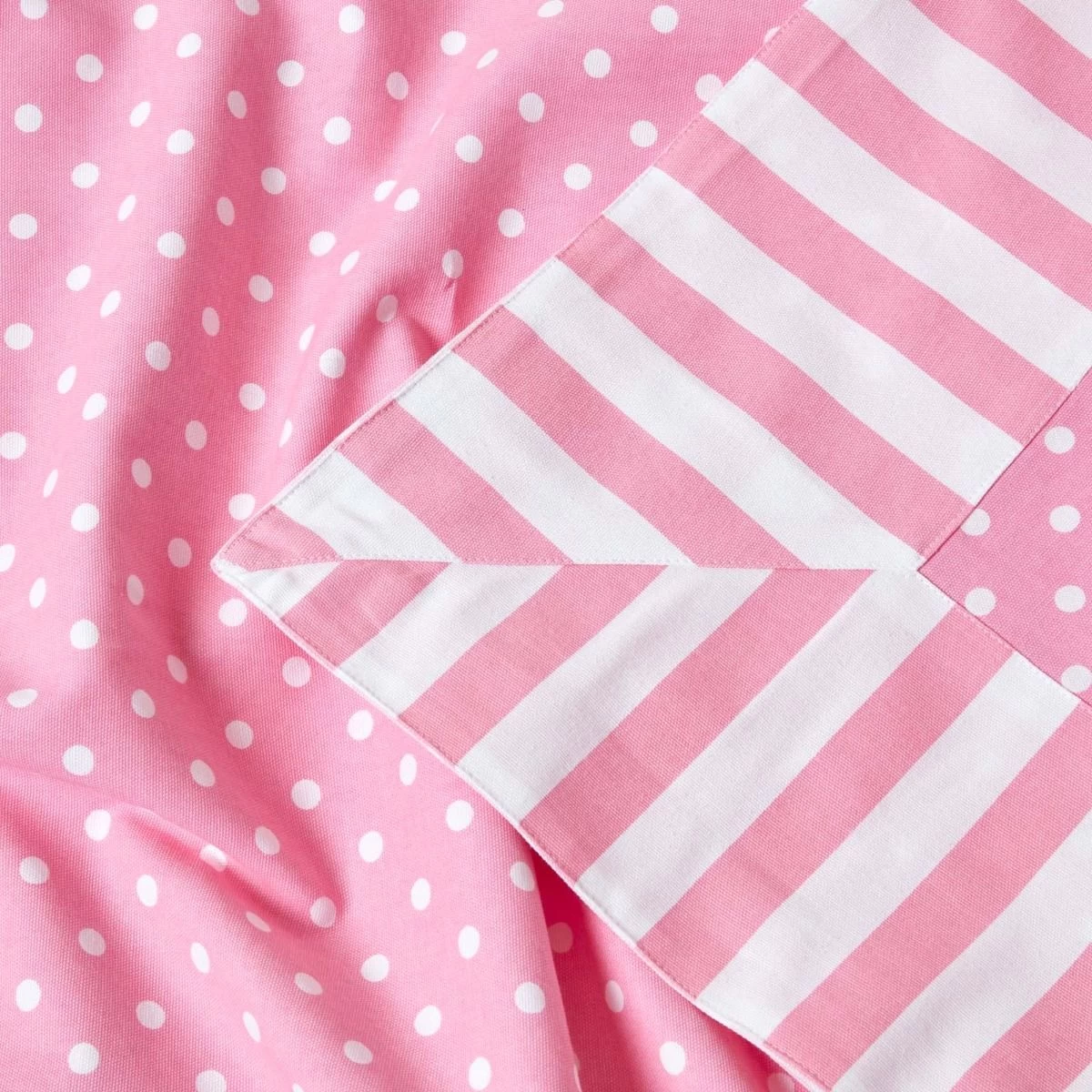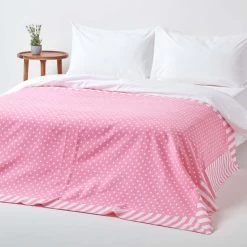 A decorative throw that is ideal to use as a sofa cover, this pink polka dot throw features a striped border for a unique and fun design. Measuring approximately 150 x 200 cm, this throw has been woven from 100% cotton, a strong and durable fabric that can be easily washed and feels soft to the touch.