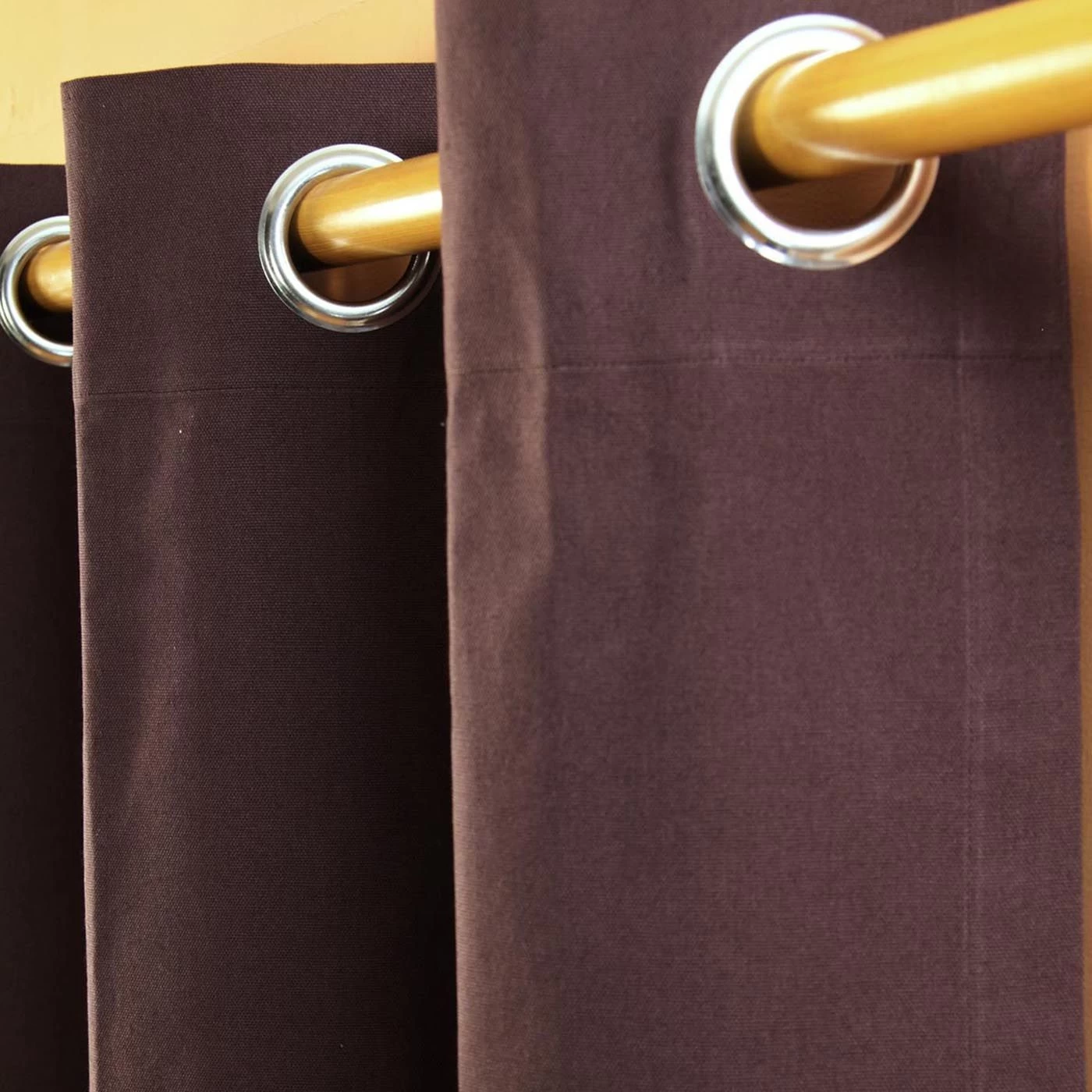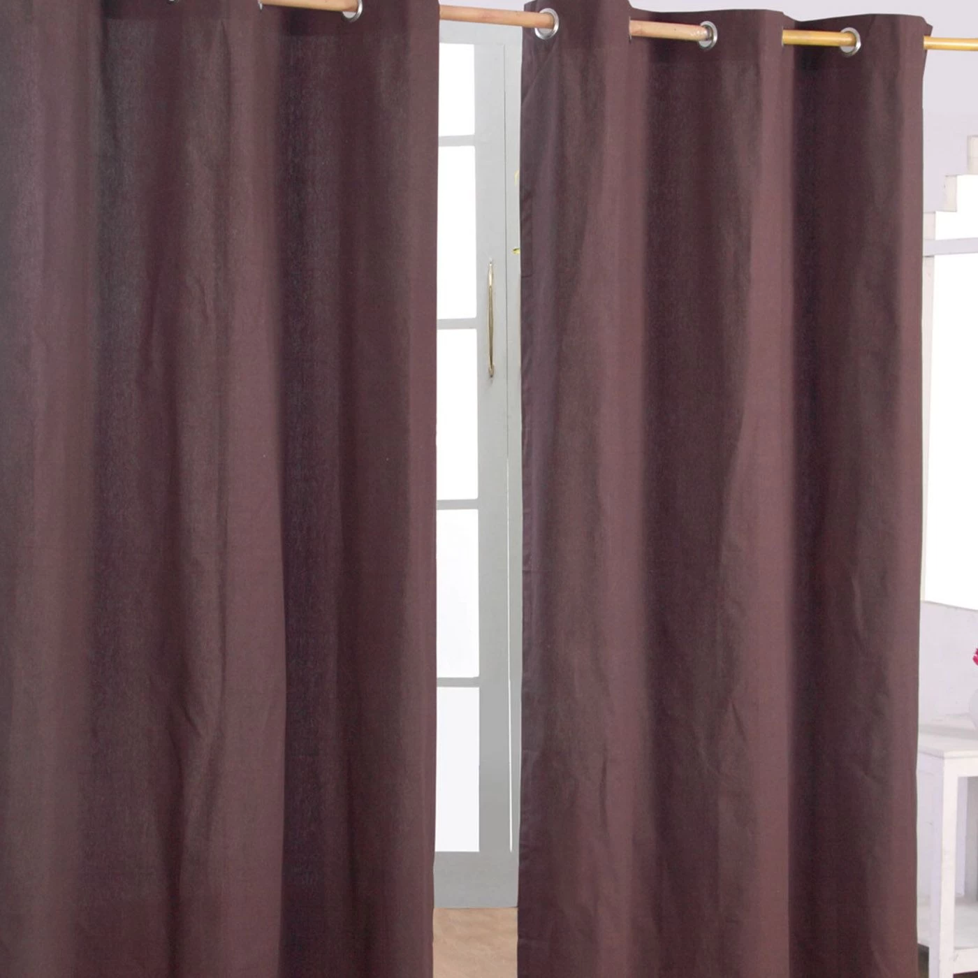 Cotton Plain Chocolate Ready Made Eyelet Curtain Pair