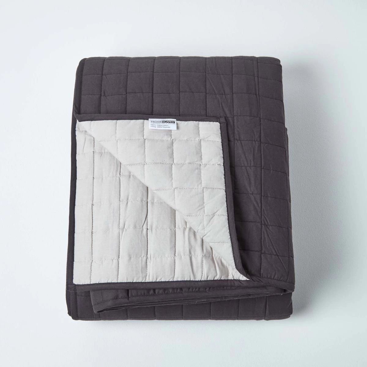 Black and grey reversible quilted bedspread from Homescapes, this 100% cotton bed or sofa throw features a contrasting colour on either side, seven colours available.
