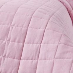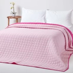Light pink and dark pink quilted blanket for bed or sofa, 100% cotton quilted bedspread box stitched for a timeless look, heavy weight cosy throw for winter months.