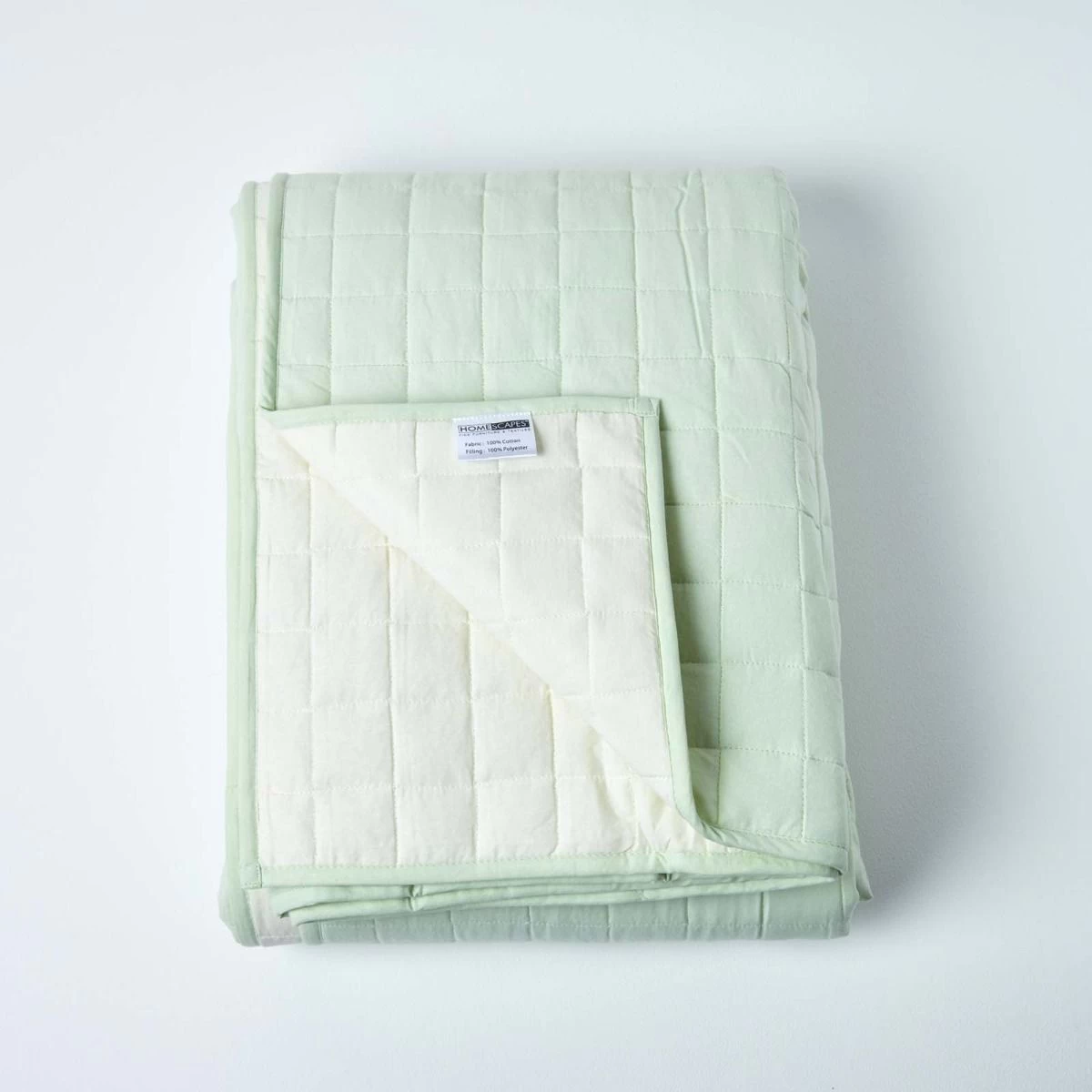 100% cotton quilted bedspread from Homescapes, this sage green and cream reversible quilted blanket is ideal for adding comfort and warmth to your bed or sofa.