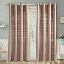 These rich Beige Cotton Rajput Ribbed Curtains are perfect for adding subtle sophistication to any room while the subtle ribbed design adds a soft touch of elegance. These Beige Rajput Curtains were hand woven using the highest quality fabric, and consequently look beautifully rich. These eyelet curtains are available from Homescapes in eight stunning colours, all of which fit wonderfully with a huge range of interior settings. Matching ranges of floor cushions, decorative cushions and fabric (to create your own soft furnishings) are available with Homescapes.
