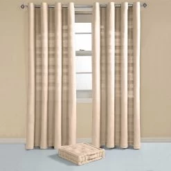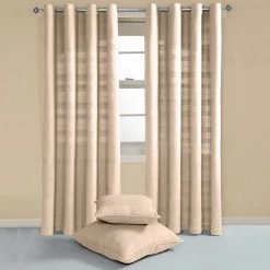 These creamy Natural Cotton Rajput Ribbed Curtains will provide a calm feel to any room, regardless of whether its decor is traditional or contemporary. These curtains will add a touch of elegance to your room due to their ribbed design. These Natural Rajput Curtains were hand woven using the highest quality fabric, and consequently look beautifully rich. These eyelet curtains are available from Homescapes in eight stunning colours, all of which fit wonderfully with a huge range of interior settings. Matching ranges of floor cushions, decorative cushions and fabric (to create your own soft furnishings) are available with Homescapes.