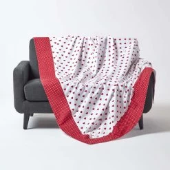 Beautifully patch worked 100% Cotton Hearts Decorative Sofa Throw represent a great mix of simplicity and design. Decorative patch work throw range is made using 100% cotton fabrics. The simple themes like stars, stripes and polka dots when mixed together or with matching plain colours compliments most of the interior decor. There are many other cushions, throws and curtains made with these fabrics in the Homescapes collection which has just been launched. These fabrics are also available with Homescapes to be bought by the meter to make your own soft furnishings. Homescapes is well known for their very high standards of quality and service which lends a huge credibility to this range.