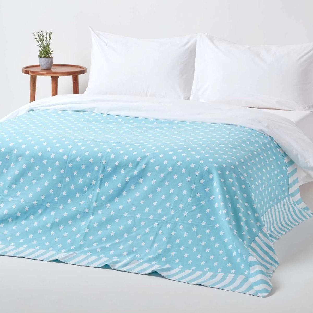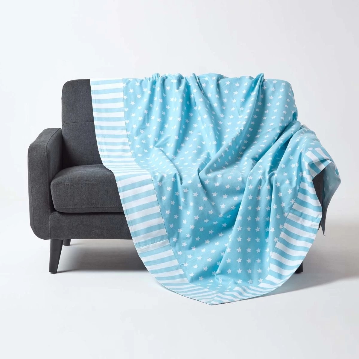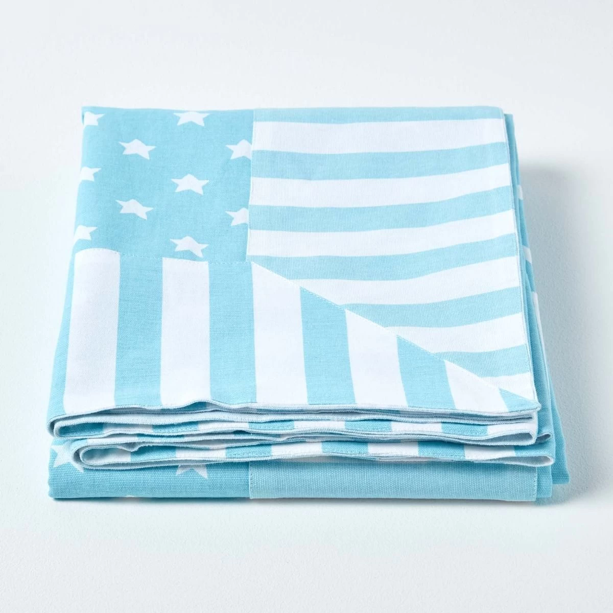 Cotton Stars And Stripes Decorative Blue Sofa Throw