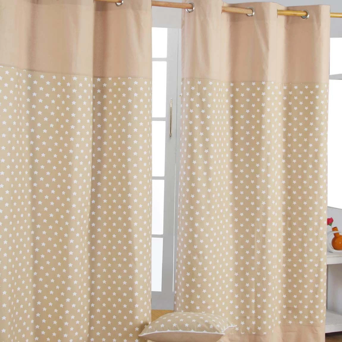 Cotton Stars Beige Ready Made Eyelet Curtain Pair