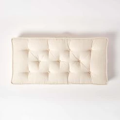 Cream cotton 2 seater cushion filled with polyfibre offering support and comfort. This booster cushion for sofas measures 100 cm wide and features a useful carry handle.