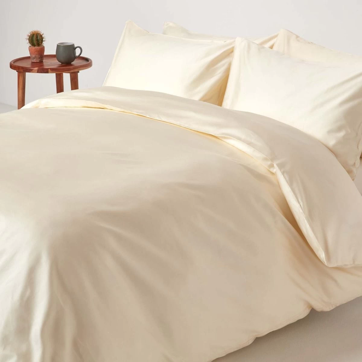 Our gorgeously soft, 100% organic cotton duvet cover sets in cream, available in single to super king size, will add a luxurious touch to your bedding.
